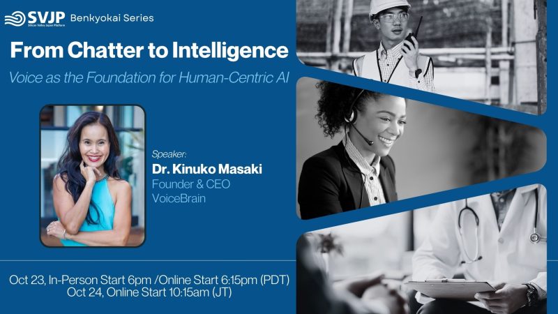 2025年10月のBenkyokaiでは、スタンフォード大学やMITなどで研究を重ね、AIスタートアップ VoiceBrain(ボイスブレイン) を立ち上げた キヌコ・マサキ博士(Kinuko Masaki)。 モデレーターを務めたのは、AI医療分野で知られる Hippocratic AI のCISO、マット・ホネア氏(Matt Honea) だ。テーマは、「From Chatter to Intelligence: Voice as the Foundation for Human-Centric AI/人間中心のAIを支える“声”の力」。 マサキ博士はシリコンバレーの中心で活躍しているにもかかわらず、彼女の語るAIの未来は、驚くほど“現場”目線のものだった。